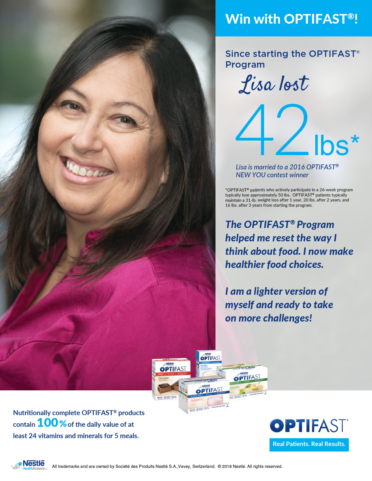 Highlighting actual Optifast patients' successful weight loss stories is an inspiring marketing tool that focuses on the brand benefit. Marketing pieces were developed across channels: print, digital, social media, and eblasts.